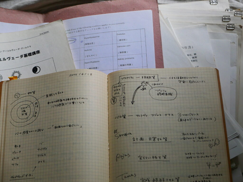 写真は、かつてスクールで勉強していたときの資料と、こんなに買わなくてもよかったのでは?って感じのアーユルヴェーダ本のラインナップ。